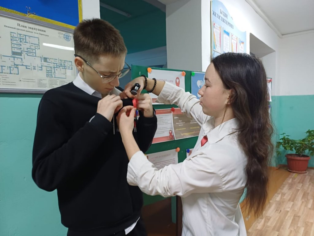 Мектеп парламентінің оқушылары Дүниежүзілік ЖИТС-ке қарсы күрес күніне арналған челленджге қатысты.