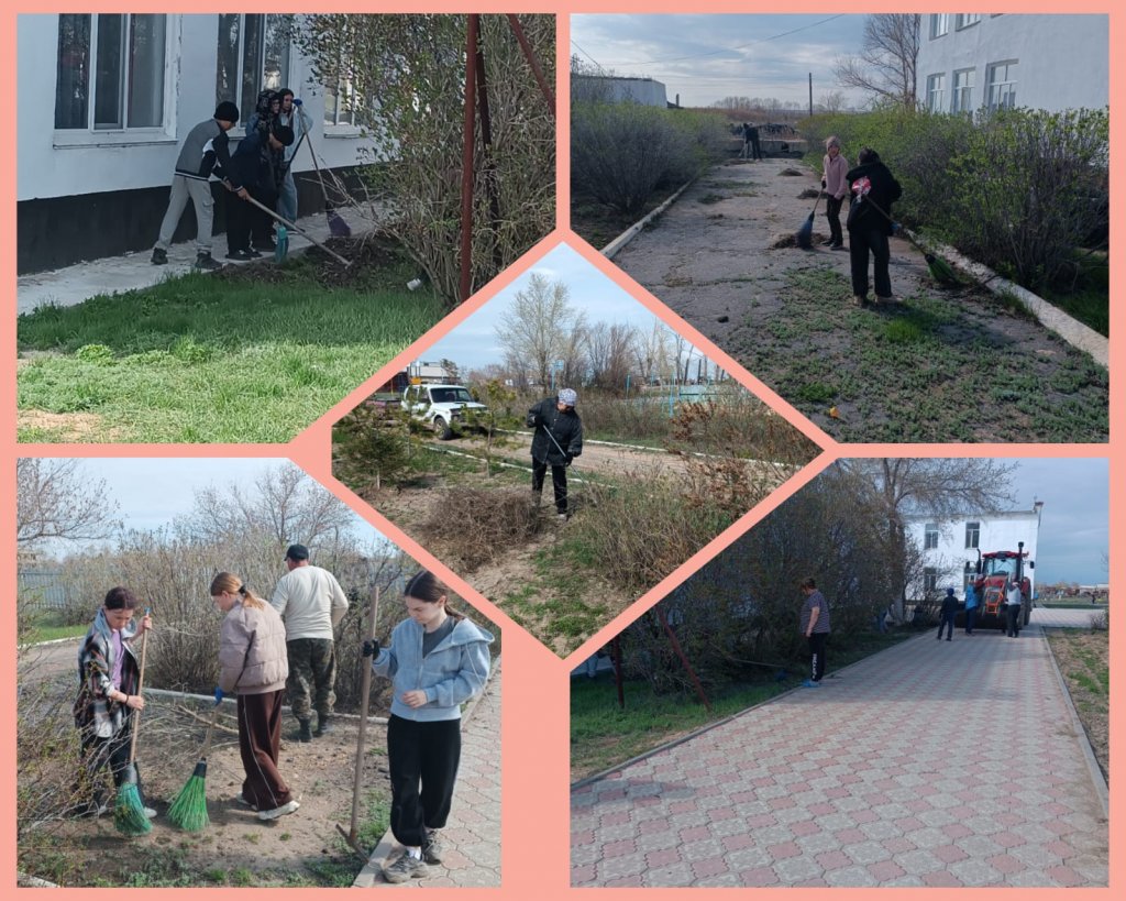 "Таза Қазақстан" акциясын өткізу аясында мектеп қызметкерлері мен оқушылары мектеп аумағын тазалауға қатысты.