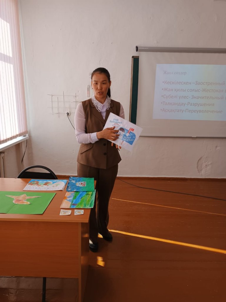 Сабақтың мақсаты: Берілген мәтіндегі жаңа сөздерді қолдана отырып, ақпаратты мазмұндайды Шығармадағы мәселелер жайлы өз пікірлерін білдіреді |