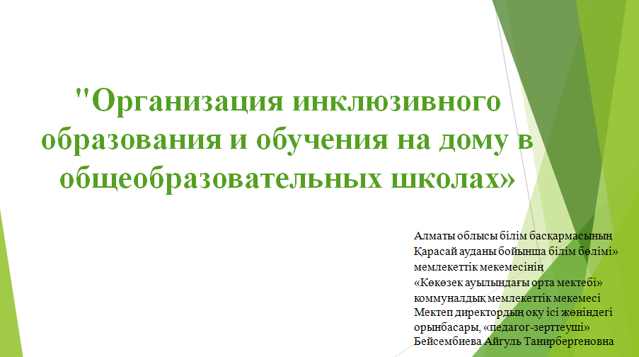 «Жалпы білім беретін мектептерде инклюзивті білім беруді және үйден оқытуды ұйымдастыру»
